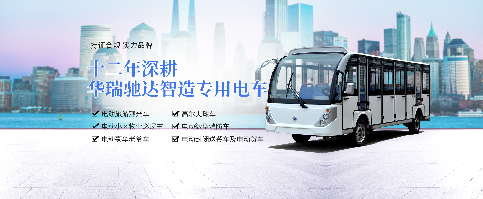 华瑞驰达先后通过了中华人民共和国,国家质量监督检验检疫总局颁发的特种设备制造许可证(场内专用机动车辆编号:TS2510924-2020)获准从事场内专用机动车辆的制造,我厂产品用于各大旅游景点、售楼部及宾馆、大学等。