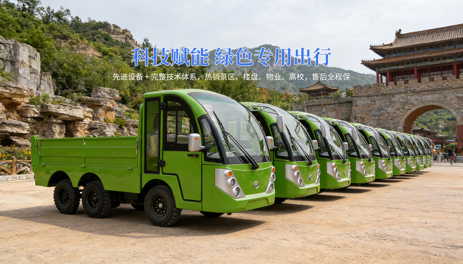 生产经营的车型有:电动旅游观光车、高尔夫球车、电动厂区巡逻车、电动微型消防车、电动豪华老爷车、电动封闭送餐车及电动货车等六大系列,二十多款非公路用电车,产品畅销全国各地,广泛应用于旅游景点、小区物业、等领域。